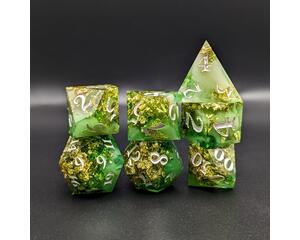 Green and Gold 7 Piece Handmade Sharp Edge Resin Polyhedral D...