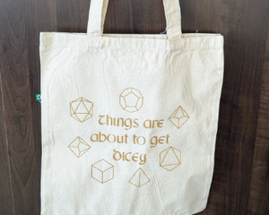 Gold TTRPG Polyhedral Dice Canvas Tote Bag - Reusable Recycle...