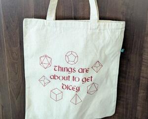 Red TTRPG Polyhedral Dice Canvas Tote Bag - Reusable Recycled...
