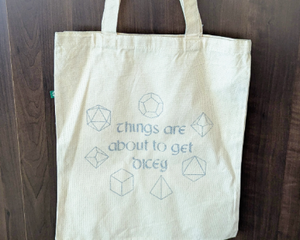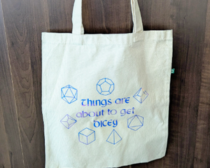 Silver TTRPG Polyhedral Dice Canvas Tote Bag - Reusable Recyc...