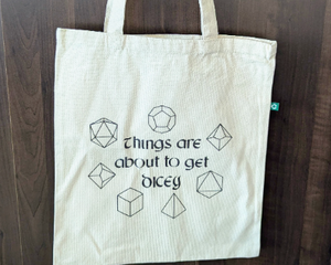 Black TTRPG Polyhedral Dice Canvas Tote Bag - Reusable Recycl...